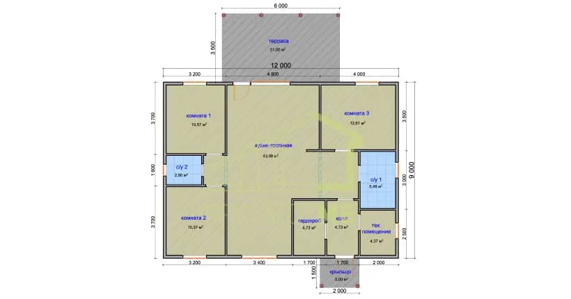 - Силовой каркас из доски сухой строганной 45х145/195мм