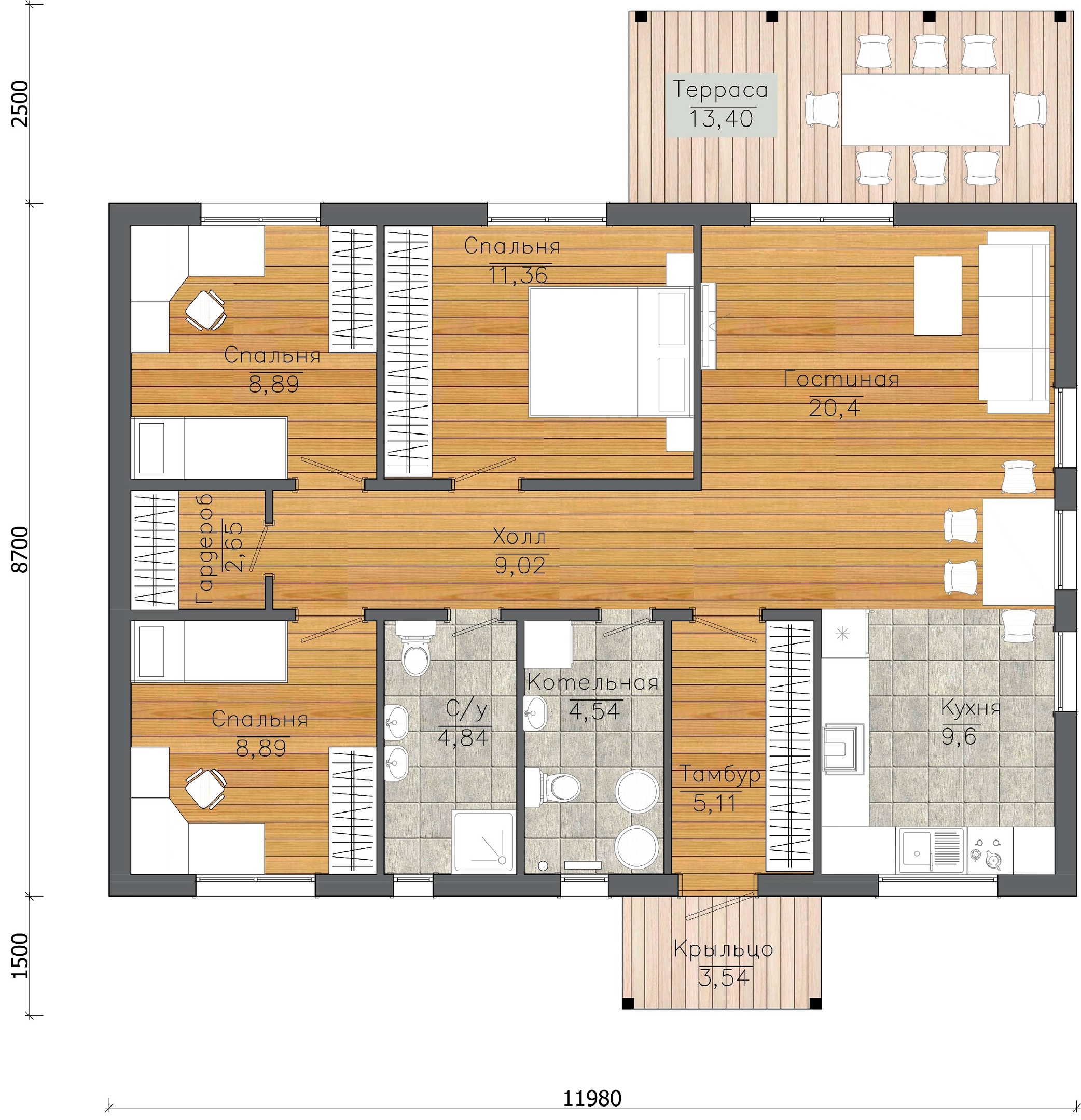 Размер: 11,9 х 8,7 м